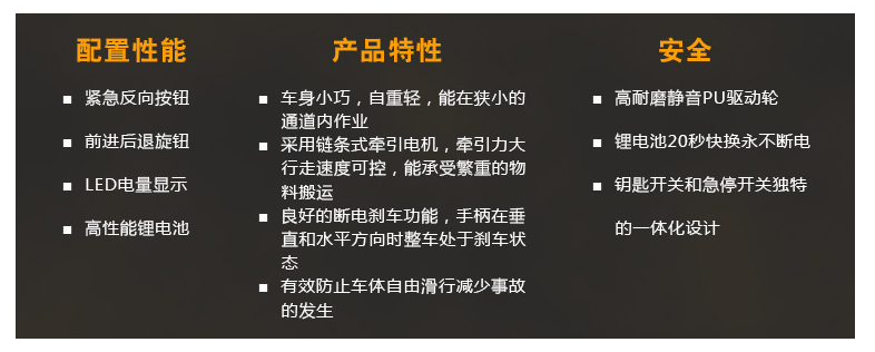 采用進口驅(qū)動輪,配置可靠的盤式剎車系統(tǒng),動力強勁,操控自如,配有大容量的高效能電池,電量持久,帶電量顯示表,低電壓報警燈,采用重型設(shè)計,結(jié)構(gòu)緊湊,操作視野開闊。